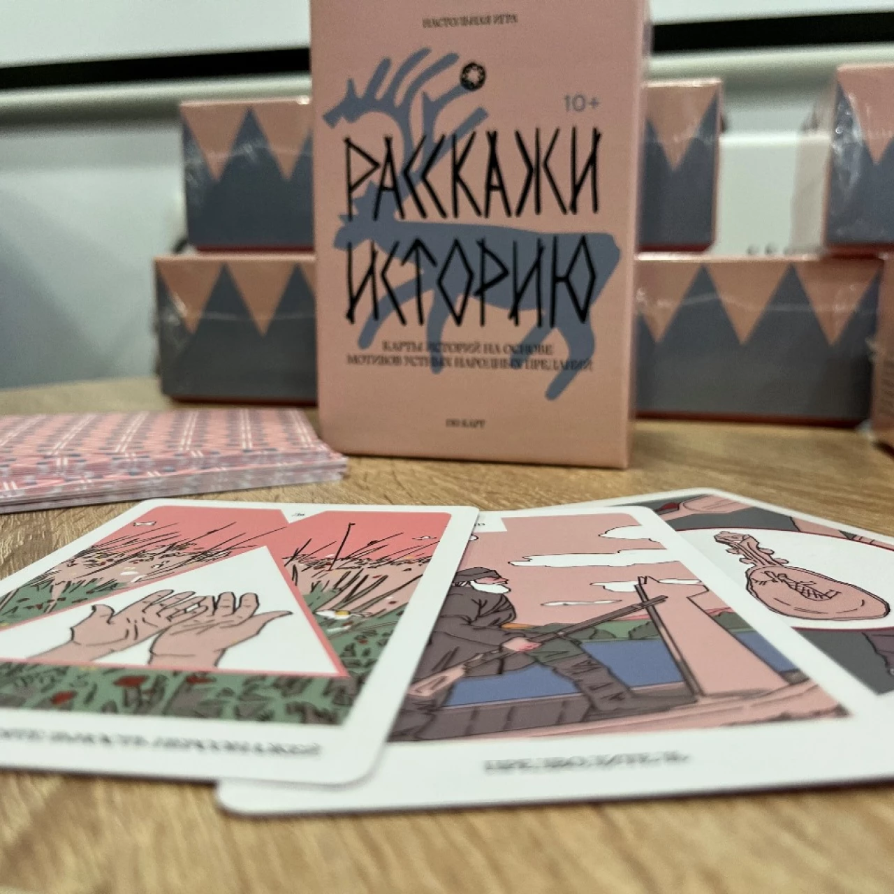 Игра «Расскажи историю» поможет сформировать навыки рассказывания устных историй о своем регионе, городе, организации и о себе в жанре традиционных народных повествований, опираясь на культурный код, зашифрованный в картах. Иллюстрации, отрисованные в палитре Кольского Севера, подробно рассказывают о жителях полуострова, особенностях языка, религии, ведения хозяйства.
