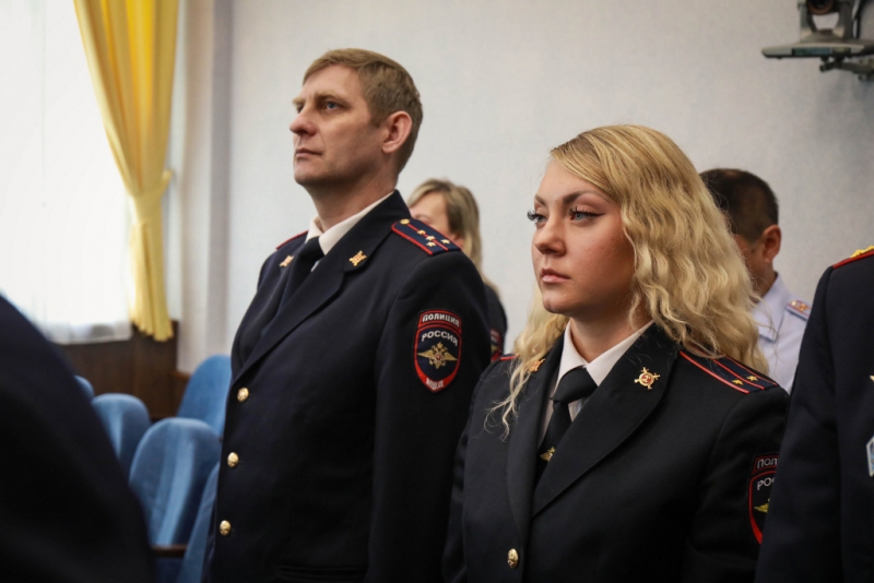 В ходе официальной части начальник Управления на транспорте МВД России по Дальневосточному Федеральному округу генерал-майор Александр Кем поздравил ряд сотрудников с присвоением очередных специальных званий и вручил погоны полковнику внутренней службы Татьяне Горелышевой, подполковнику полиции Александру Мешкову и старшему лейтенанту полиции Карине Пьянзиной.