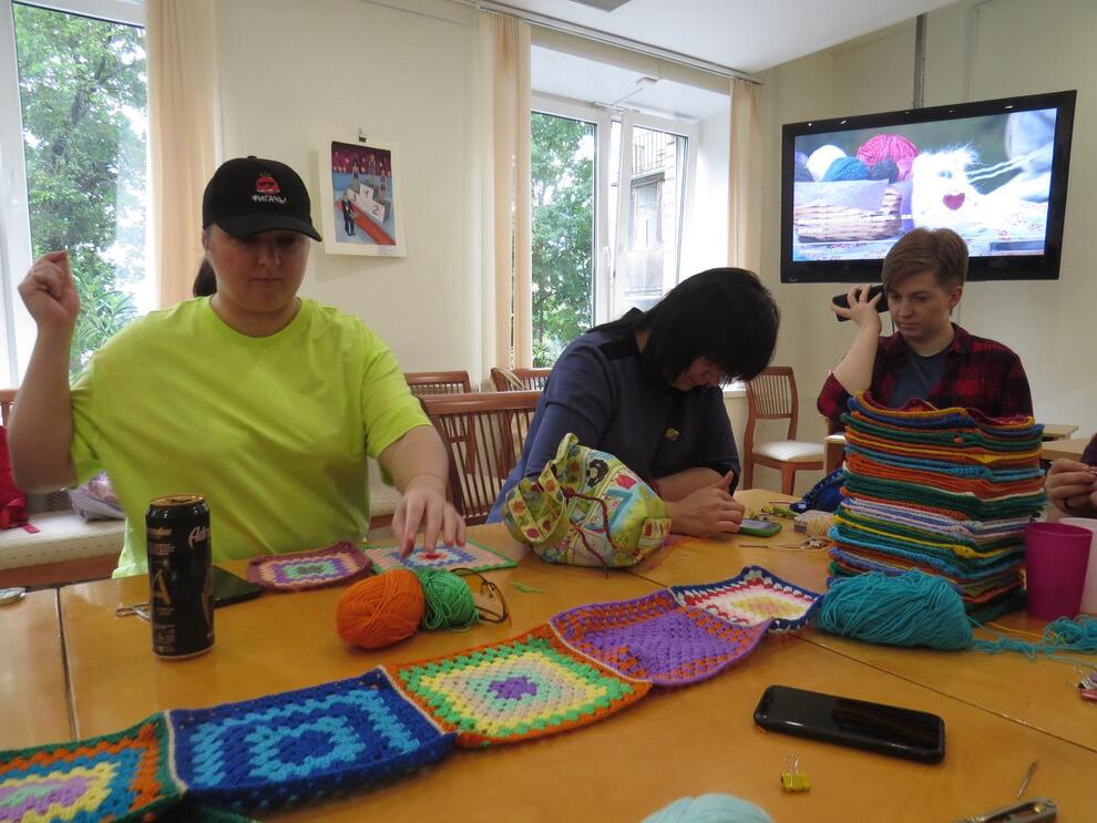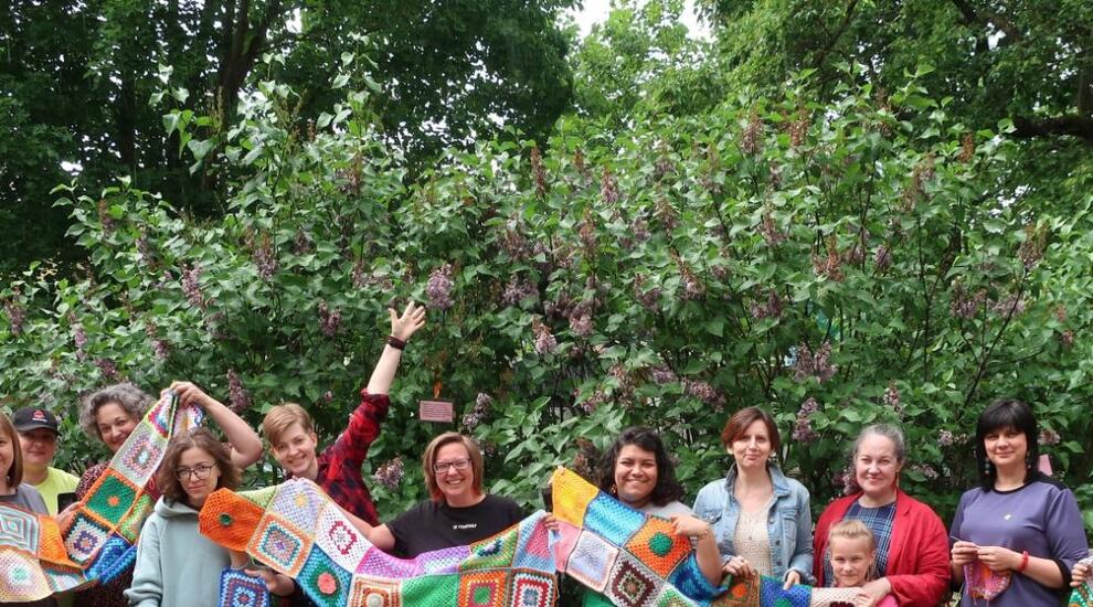 Всемирный день вязания на публике душевно и тепло отметили 8 июня в Гатчине, в городской библиотеке им. А.И. Куприна. На этот раз в гостеприимной «Купринке» объединились два благотворительных проекта - «Гатчинская Хурма» и «Люди вяжут людям» — чтобы создать из разноцветных вязаных квадратов тёплый Плед дружбы.