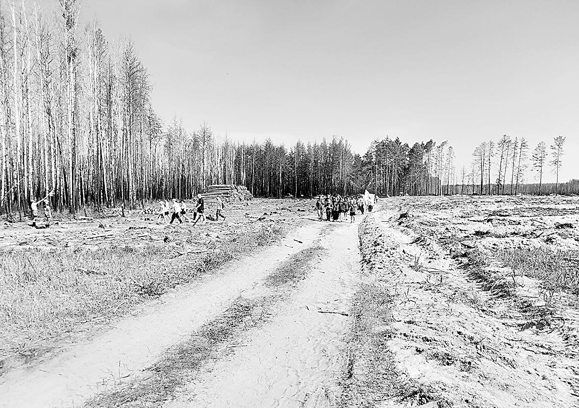Праздничный день — 12 июня -пришелся на среду. И у села Речкина, на гигантском горельнике, выжженном в тамошних лесах прошлогодним пожаром, собралась масса народу. Одетого совсем не по-праздничному, а скорее по-рабочему. Хотя рядом выдувал марши духовой оркестр. Как назвать то, что возле Речкина происходило?