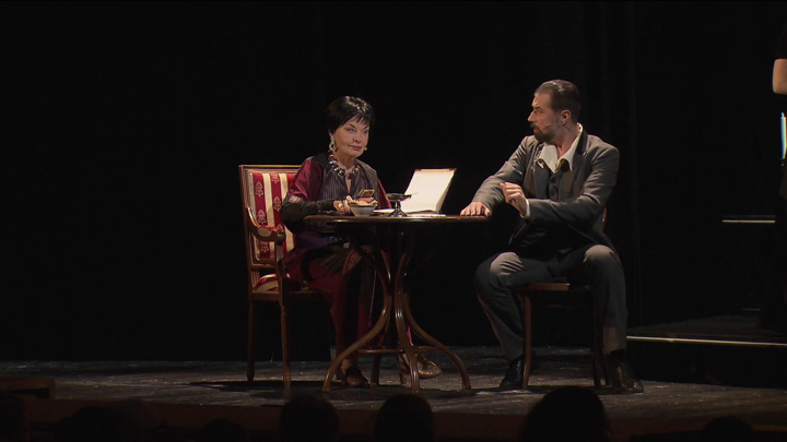 За кулисами атмосфера праздника, в зале собираются зрители. Впереди спектакль, поставленный мастером пластической драмы Марией Шмаевич. Декорации к спектаклю минималистичны. Свет приглушён. Ставку режиссёр делала не на спецэффекты, а на поэтичность языка и постоянные перевоплощения артистов. Под музыку альта на сцене рисуют образы тех, кто когда-то знал поэта лично. В спектакле звучат воспоминания современников Пушкина, его стихи, фрагменты "Выстрела", "Евгения Онегина", "Египетских ночей". Людмила Чурсина как будто листает страницы книги жизни. Она же воплощает в себе образ гадалки, которая, согласно воспоминаниям друзей поэта, предсказала его гибель на дуэли за много лет до страшной трагедии. Рассуждая о жизни и смерти, что такое судьба и можно ли её изменить, Чурсина вспоминает ещё одного поэта – Михаила Лермонтова. Его строки также звучат в постановке. "Печальный демон – дух изгнанья. Это уже моя личная такая. Мне режиссёр позволила. Поэтому, я надеюсь, всё равно чем больше о гениях нашей земли будут узнавать, кто придёт зритель, юные, школьники – им это полезно будет", – признается народная артистка СССР Людмила Чурсина.