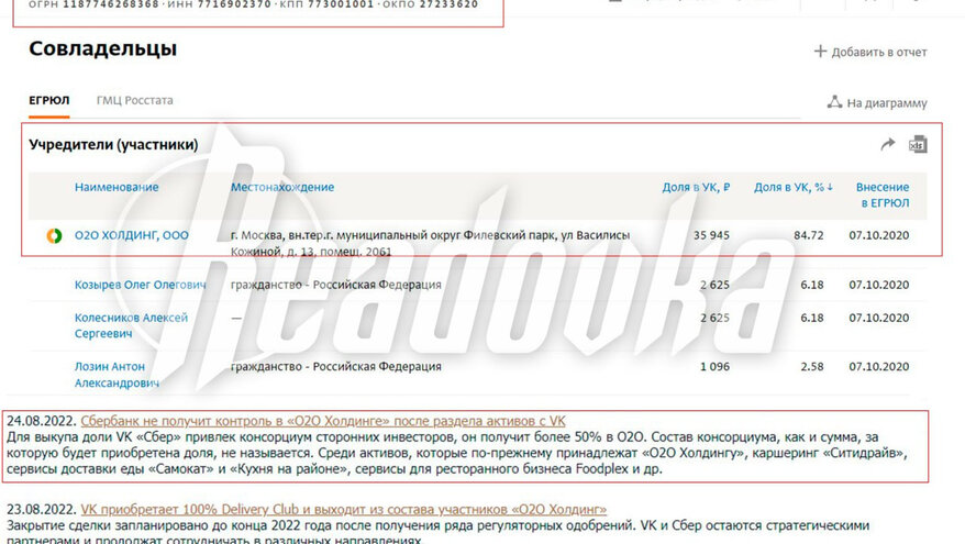 По данным следствия, «Савон-К» приготовил 2,4 тыс порций салата «Лобио» с отравленной бутулизмом фасолью, которые доставляли через сервисы доставки «Кухня на районе» и «Самокат». Оба сервиса принадлежали ПАО «Сбербанк» и VK Group через общую дочернюю компанию ООО «О2О Холдинг».