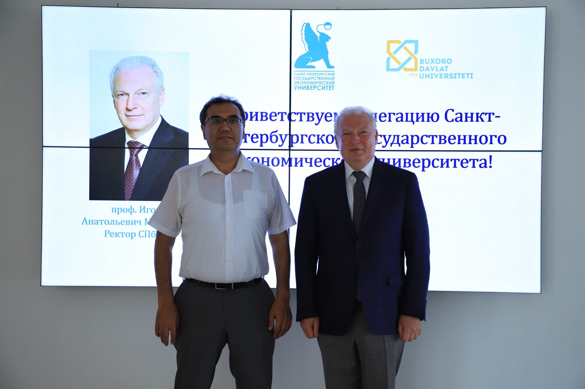 19 июня ректор СПбГЭУ Игорь Максимцев посетил Бухарский государственный университет (БГУ), где провел переговоры с ректором Обиджоном Хафизовичем Хамидовым.
