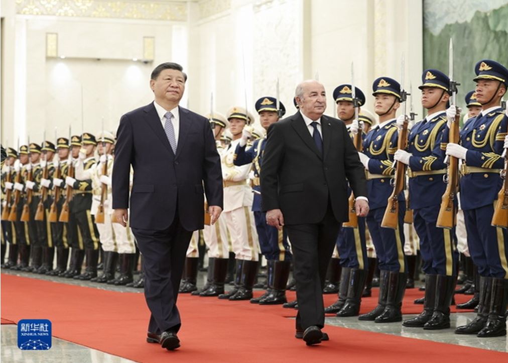 Президент Алжира А. Теббун в ходе переговоров с Си Цзиньпином во время государственного визита в Пекин в августе 2023 г. высоко оценил конструктивную роль Китая в поиске справедливых решений для урегулирования ситуации в региональных горячих точках, таких как Палестина, и в продвижения регионального и глобального мира и стабильности. Он также отметил, что Алжир поддерживает позицию Китая по вопросам, касающимся ключевых интересов Китая, таких как Тайвань и Синьцзян, и поддерживает Инициативу глобального развития и Инициативу глобальной безопасности, предложенные Китаем.