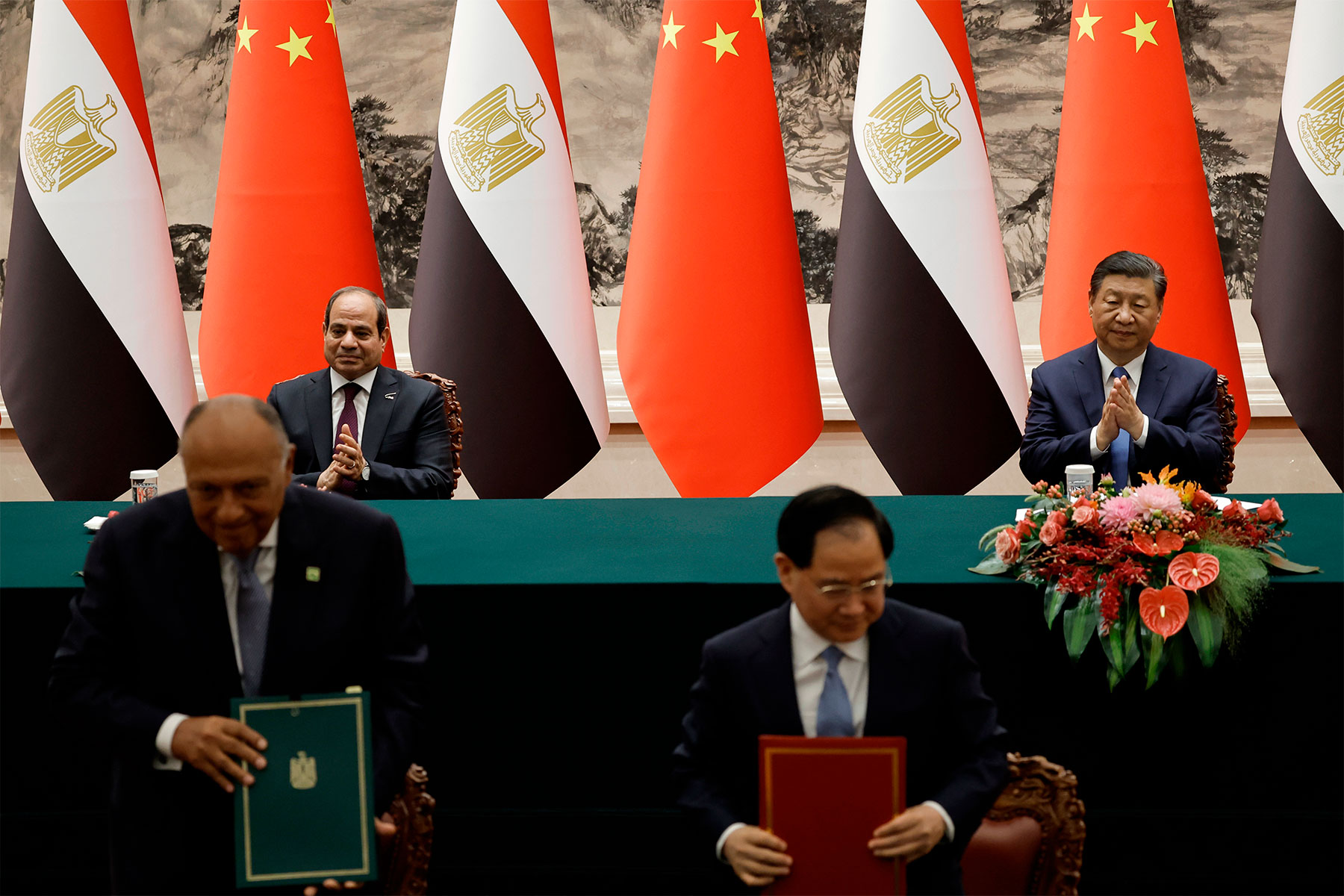 На встрече главы МИД КНР Ван И с президентом А.Ф. ас-Сиси в Каире в январе 2024 г. стороны заявили о продолжении тесной кооперации в поиске всеобъемлющего и справедливого решения палестинской проблемы. Они также договорились продолжить реализацию совместных проектов экономического развития — как на двусторонней основе, так и в рамках группы БРИКС и проекта ОПОП.
