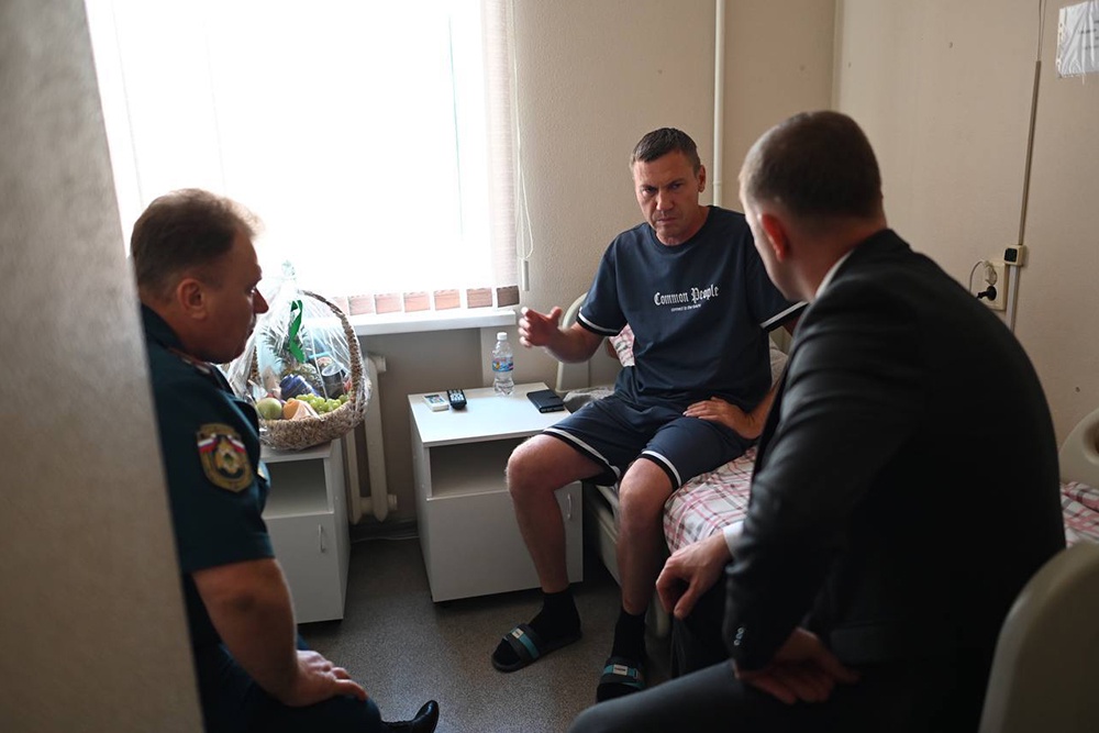 Двое спасателей, которые были ранены 21 июня во время массированной атаки беспилотников ВСУ на Краснодарский край, идут на поправку. Мэр Краснодара Евгений Наумов в своем Telegram-канале сообщил, что вместе с врио начальника МЧС России по Кубани Сергеем Симоненко посетил спасателей в больнице.
