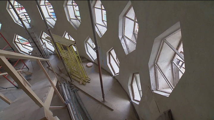 Не просто так крышу архитектор сделал плоской. Сюда семья Мельниковых выходила загорать. Крыша, кстати, двухуровневая. Сейчас мы поднимаемся на второй уровень. Пока сняли кровлю, есть возможность увидеть, как дом выглядит изнутри. Те самые знаменитые мембраны-перекрытия, которые изобрёл Константин Мельников выглядят как соты. Благодаря чему нагрузка равномерно распределяется и внутри дома можно было обойтись без несущих стен. "Друзья-архитекторы, художники считали, что это уникальное сооружение, которое является иконой авангарда и до сих пор сохраняется такое мнение", – отметила директор Государственного музея Константина и Виктора Мельниковых Анна Кистанова.