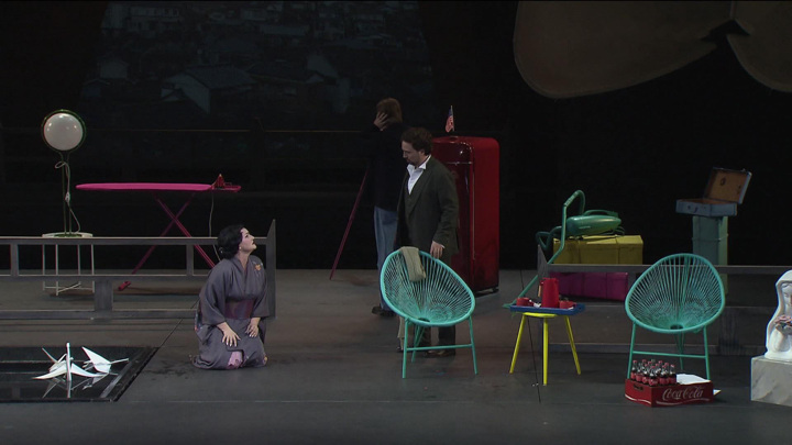 Пуччини столкнул две культуры – американскую и японскую. Два мира: здесь они пересеклись – кола и японские журавлики, холодильник с сигаретами и кинжалом. Мадам Баттерфляй и Пинкертон, который вызывает у Ивана Гынгазова противоречивые чувства. Иван Гынгазов, солист театра "Геликон-опера": "Он ко всему относится просто, хотя не думает о том, что этим "просто" он наносит увечья людям, рушит судьбы".