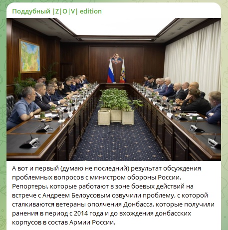 Белоусов выполнил первое обещание, которое дал военкорам. "Справедливость восстановлена. Инвалиды войны, которая идёт с 2014 года, получат соответствующий статус", - подтвердил Евгений Поддубный.
