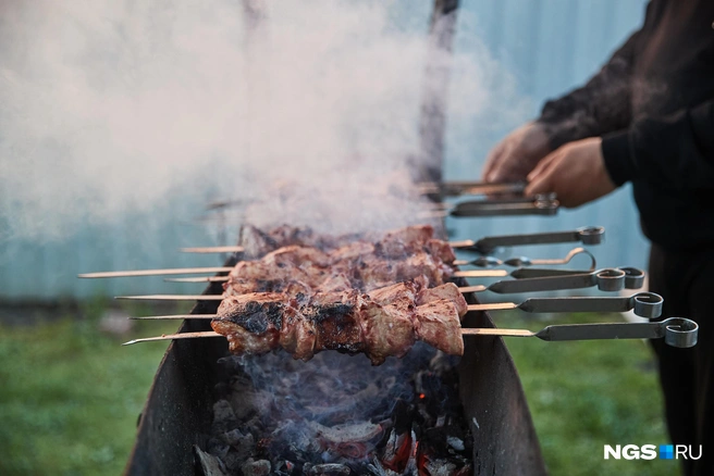 — Самый простой шашлык мы всегда делаем с минералкой и луком. Мясо берем свинину, стараемся выбирать шейку. Режешь кусочками 5 на 3 сантиметра, чтобы долго не томить на огне. Параллельно готовятся угли. Я их никогда не покупаю, — рассказал Василий Турсабаев.