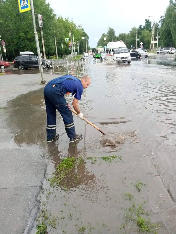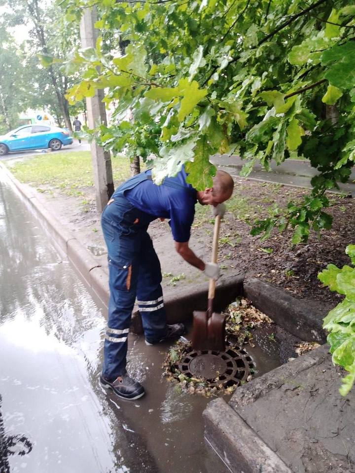 Спецтехника расчищает дороги от мусора и грязи, которые забивают водостоки ливневой канализации. При необходимости специалисты откачивают воду.