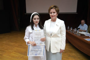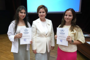 Диплом лауреата I степени студентке 6 курса лечебного факультета РОМАХОВОЙ АННЕ АЛЕКСАНДРОВНЕ – победителю Международного конкурса исследовательских работ для студентов и учащихся образовательных учреждений в области биологических, химических и медицинских наук за проект «Редкий клинический случай лейкозной оптической нейропатии у больной острым лимфобластным лейкозом».