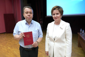 Министр здравоохранения Астраханской области д.м.н., профессор Александр Владимирович Буркин, и.о. ректора профессор Ольга Александровна Башкина вручили: