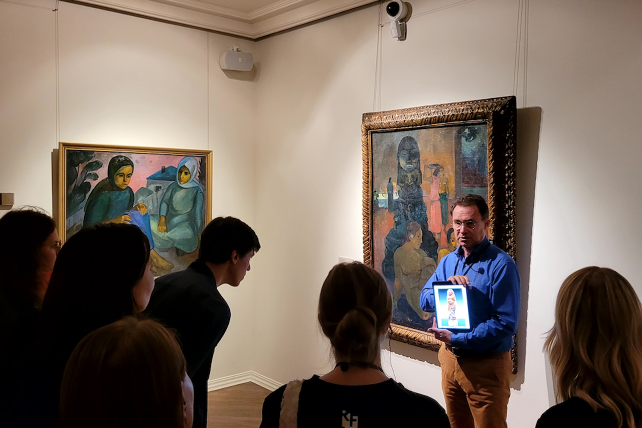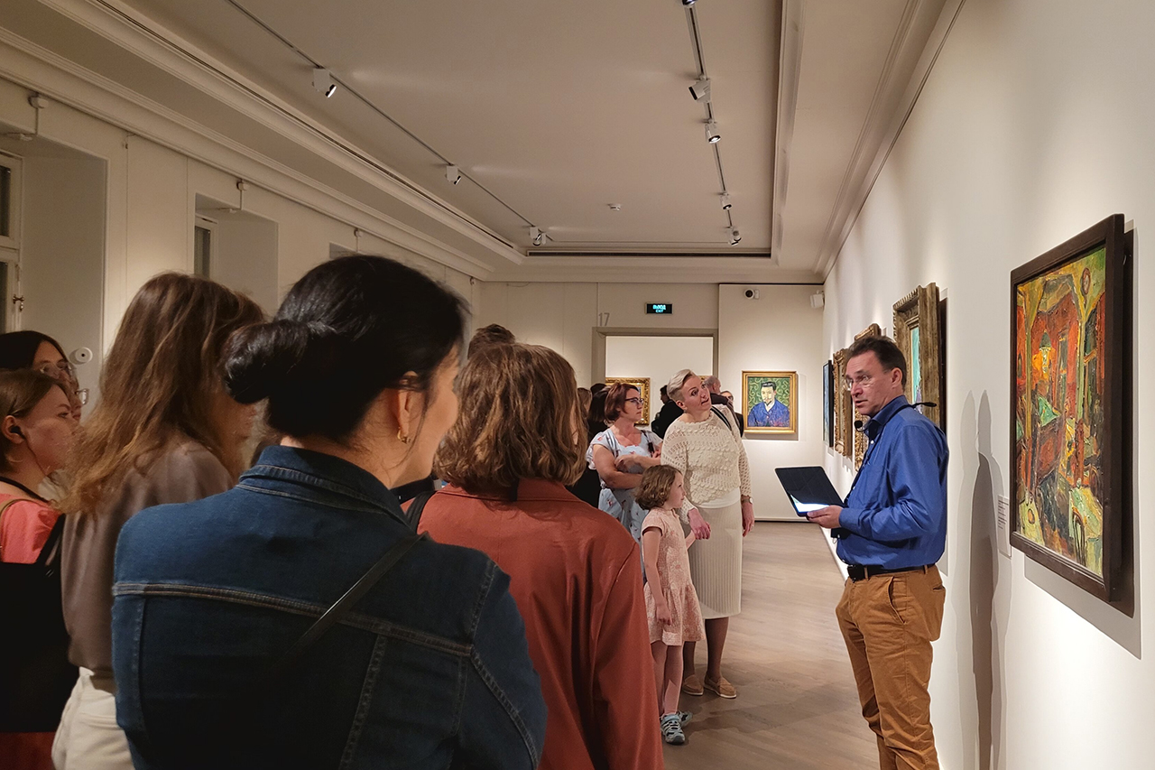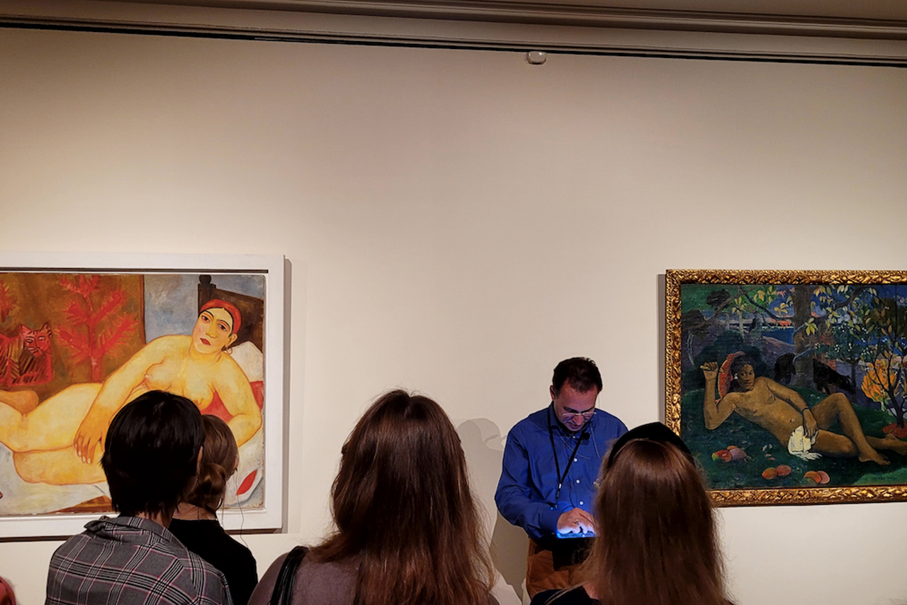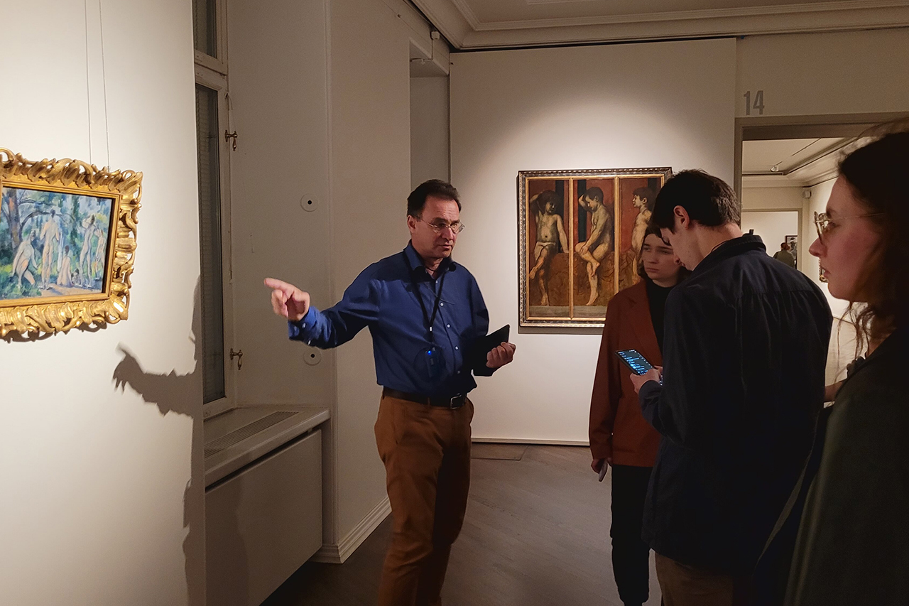 Во время экскурсий студенты и кураторы много беседовали о взаимодействии русского и зарубежного искусства в ХХ веке, о том, как вписать творчество отечественных художников в общемировой контекст, о способах "столкнуть" и сопоставить между собой искусство старое и современное, о том, как художественными средствами формируется миф о национальной истории и манящей экзотической культуре.