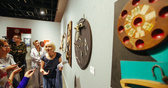 «А вот, например, Владлен Гаврильчик — вообще удивительная история: советский офицер-подводник, — показывает Марина Борисовна картину в углу одного из залов. — Закончил, и ему захотелось стать художником. Он влился туда, учился у очень многих и стал создавать такие наивные, в стиле лубка, произведения».