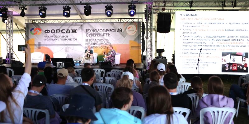 Докладчик привел в пример наиболее выдающиеся династии проекта, который будет актуализироваться в дальнейшем, и предложил участникам «Форсажа» продолжить подобный опыт по сбору информации о династиях в компаниях, где они работают, а также проверить себя, своих коллег и знакомых на причастность к трудовым династиям.
