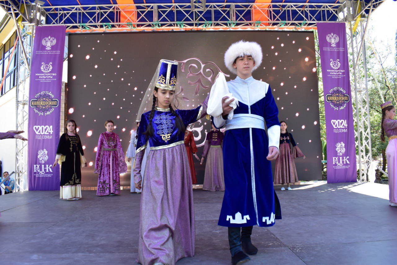 «Калейдоскоп народов Кавказа» – это проект, направленный на сохранение, развитие и популяризацию культурной самобытности народов и этнических общностей регионов Южного и Северо-Кавказского федеральных округов России. Организатор мероприятия – Карачаево-Черкесская республиканская общественная молодежная организация «Интеллектуально-творческое общество молодежи». Проект реализуется при поддержке Минкультуры России в рамках программы народных грантов, а также при поддержке Министерства культуры Карачаево-Черкесской Республики и РГБУ «Карачаево-Черкесский Республиканский Центр народной культуры». Этнофестиваль открылся творческими встречами участников фольклорных коллективов: хореографических, вокальных, инструментальных групп, мастеров народных промыслов и ремесел, представляющих различные виды народной культуры из Луганской Народной Республики, Республики Крым, Краснодарского края, Республики Адыгея, Ставропольского края, Республики Ингушетия, Республики Дагестан, Чеченской Республики, Астраханской области и Карачаево-Черкесской Республики. Гости и участники фестиваля смогли познакомиться с вокальным, хореографическим, инструментальным видами народного искусства, с бытом, традициями и обычаями абазин, карачаевцев, ногайцев, русских и черкесов. В программе – театральные постановки, выставка-ярмарка декоративно-прикладного искусства мастеров из Луганской Народной Республики, Краснодарского края, Республики Дагестан, Республики Ингушетия и Астраханской области, а также концерты творческих коллективов в Ногайском, Прикубанском, Усть-Джегутинском и Хабезском муниципальных районах Республики. Завершился фестиваль гала-концертом. Всего в мероприятии приняли участие артисты и танцевальные коллективы из более чем десяти регионов России.