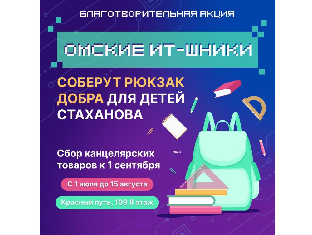 С 1 июля по 15 августа в Омской области пройдет акция «Рюкзак добра». Её цель — собрать канцелярские принадлежности для детей из подшефного города Стаханова.