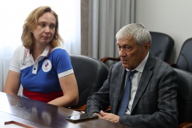 На встрече с ректором СФУ Максимом Румянцевым Александр Грушин и Татьяна Кригина отметили масштаб, отличную инфраструктуру университета, которая позволяет готовить спортсменов высокого уровня, но подчеркнули, что не менее важно поддерживать профессиональный уровень подготовки преподавателей.