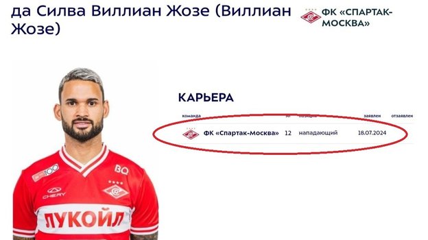 Сегодня «Спартак» внес в заявку на сезон 22 игрока. В их число вошел бразильский нападающий Виллиан Жозе. Он будет выступать под 12-м номером, который, как правило, считается болельщицким: его символически сохраняют для поклонников клубов.