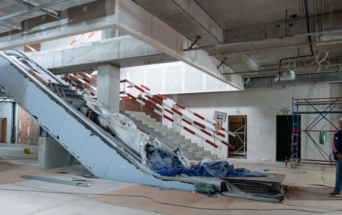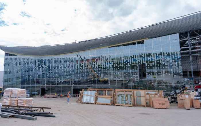– От общего объема здание готово на 60%, но все задачи по бетонным работам, кровле и фасаду исполнены на 100%. Сейчас продолжаются внутренние работы: осталось доложить плитку, обшить потолки и стены. Опережаем график на месяц-полтора, – рассказал журналистам начальник строительного участка компании-подрядчика ООО «Лимакмаращстрой» Мислим Асланов.