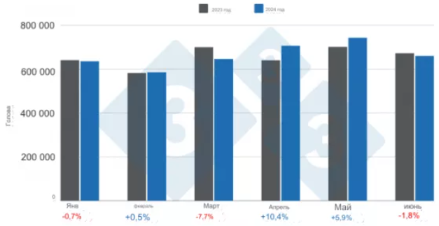 В июне убой достиг 660 757 голов, что на 1,8% меньше по сравнению с тем же месяцем предыдущего года и на 11,2% меньше по сравнению с маем.