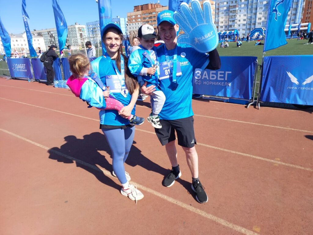 Самая маленькая участница преодолевала свой километр вместе с папой, мамой и старшим братиком. Супруги познакомились на стадионе «Заполярник» во время утренних пробежек, создали семью, в которой появилось двое ребятишек. В семье Введенских папа Никита работает инженером отдела снабжения Медного завода, мама трудится в управлении по персоналу ЗФ «Норникеля» специалистом по подготовке персонала, сынишке Ясону 3,5 года, а лапочке-дочке Марьям один год и семь месяцев.