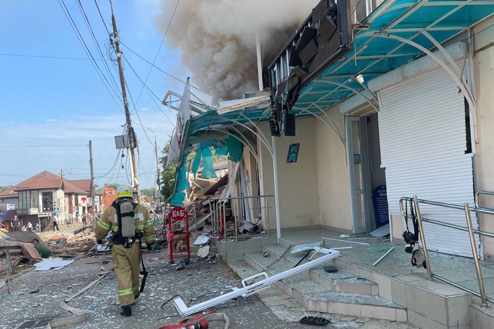 Как сообщалось ранее, взрыв раздался в Апшеронске в 7.55 утра 22 июля. По предварительным данным, сдетонировала газовоздушная смесь. В результате обрушилось около 100 квадратных метров нежилых зданий.