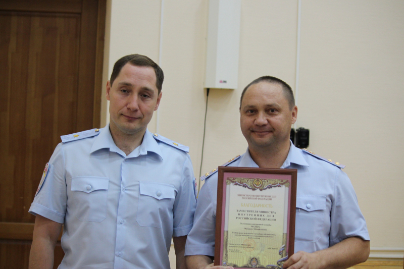 По сложившейся традиции работа совещания началась с поощрения сотрудников, отличившихся при исполнении служебных обязанностей и показавших наиболее достойные результаты в выявлении, пресечении и профилактике противоправных деяний на объектах транспортной инфраструктуры. Под аплодисменты собравшихся заместитель начальника ГУТ МВД России Денис Маслов вручил ведомственные медали «За доблесть в службе» двум представителям УТ – заместителю начальника полиции по охране общественного порядка полковнику Михаилу Ермолину и инспектору отделения кадров капитану Артему Котельникову. Благодарности Министра внутренних дел Российской Федерации был удостоен заместитель начальника УТ МВД России по УрФО полковник внутренней службы Михаил Малых, а благодарностью за подписью начальника Главного управления на транспорте генерал-лейтенанта полиции Олега Калинкина поощрили старшего оперуполномоченного отдела по борьбе с преступными посягательствами на грузы ЛО МВД России на станции Екатеринбург-Пассажирский капитана Егора Старкова. В свою очередь, за проявленный профессионализм почетной грамотой УТ МВД России по УрФО поощрили заместителя начальника Орского ЛО подполковника полиции Татьяну Исаеву, а благодарности начальника Управления получили руководитель штаба Линейного отдела на станции Нижний Тагил Сергей Кушнов и младший инспектор специализированного отделения по обеспечению общественного порядка ЛО МВД России в аэропорту «Кольцово» Дарья Чухрай. Еще троим сотрудникам Управления уральской транспортной полиции Александр Кудрявцев вручил благодарности, подписанные Министром общественной безопасности. Среди отличившихся – начальник штаба полковник Наталья Никитенкова, начальник ОЭБиПК майор Андрей Соколов и руководитель инспекции по личному составу ОРЛС Егор Сторожев.