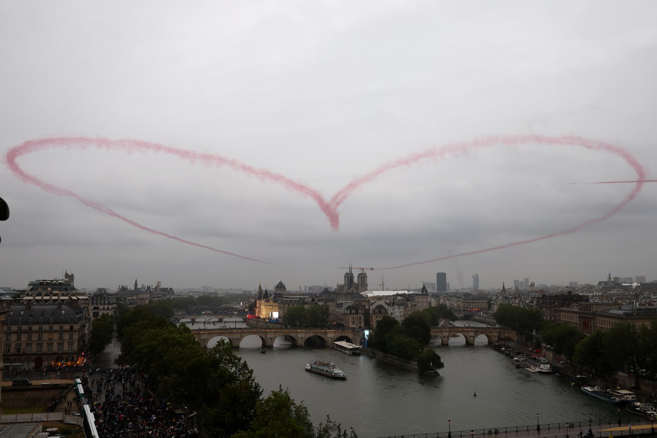 Всё пошло наперекосяк с самого начала - в день открытия Олимпийских игр сильно подвела погода. Поэтому наблюдать за шоу гостям французской столицы пришлось в обнимку с зонтиками.
