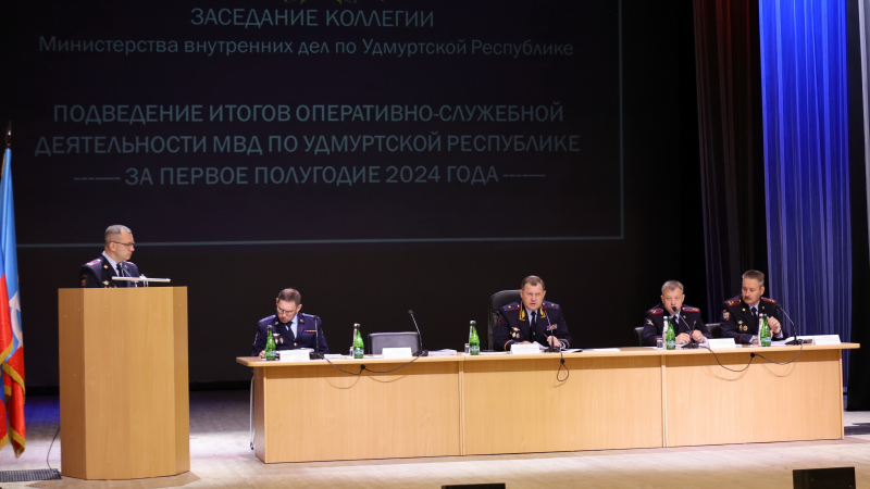 Сегодня в г. Воткинске под председательством Министра внутренних дел по Удмуртской Республике генерал-майора полиции М.Н. Тихонова состоялось выездное заседание коллегии регионального МВД по итогам работы за 1 полугодие 2024 года