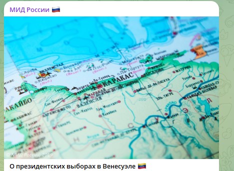 Россия приветствует успешное проведение народного волеизъявления в Венесуэле и подтверждает принципиальный настрой на дальнейшее укрепление отношений между двумя странами в духе стратегического партнёрства, продолжение плотной координации на международных и региональных площадках.