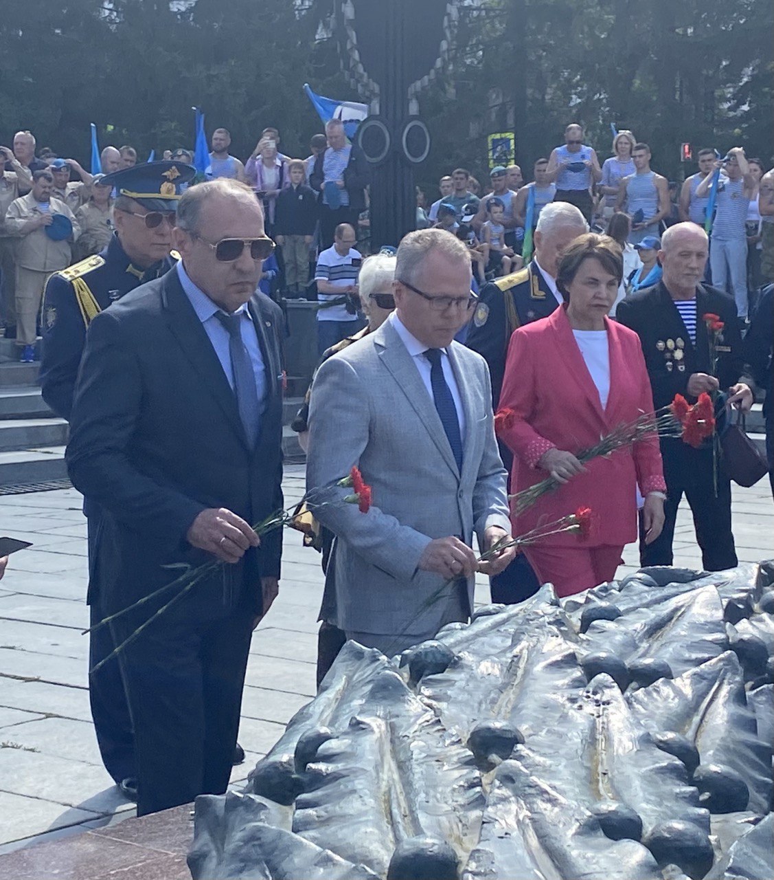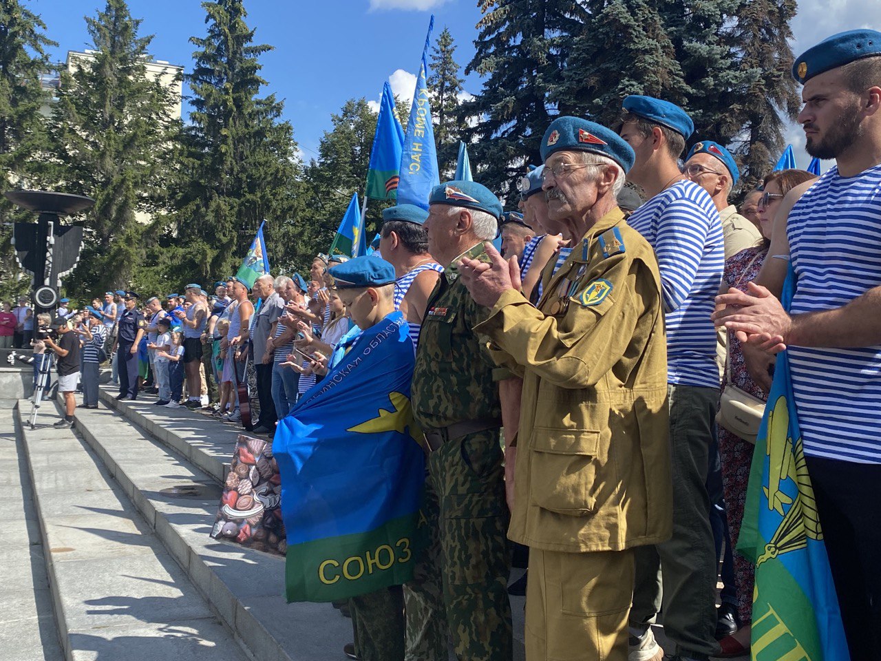 «Уважаемые бойцы, ветераны, элита вооруженных сил Российской Федерации! Почет и уважение Вы заслужили с оружием в руках. От имени Министерства общественной безопасности поздравляем Вас всех кто служил, служит или мечтает служить в ВДВ»,- обратился к присутствующим первый заместитель Министра общественной безопасностиВладимир Гусак.