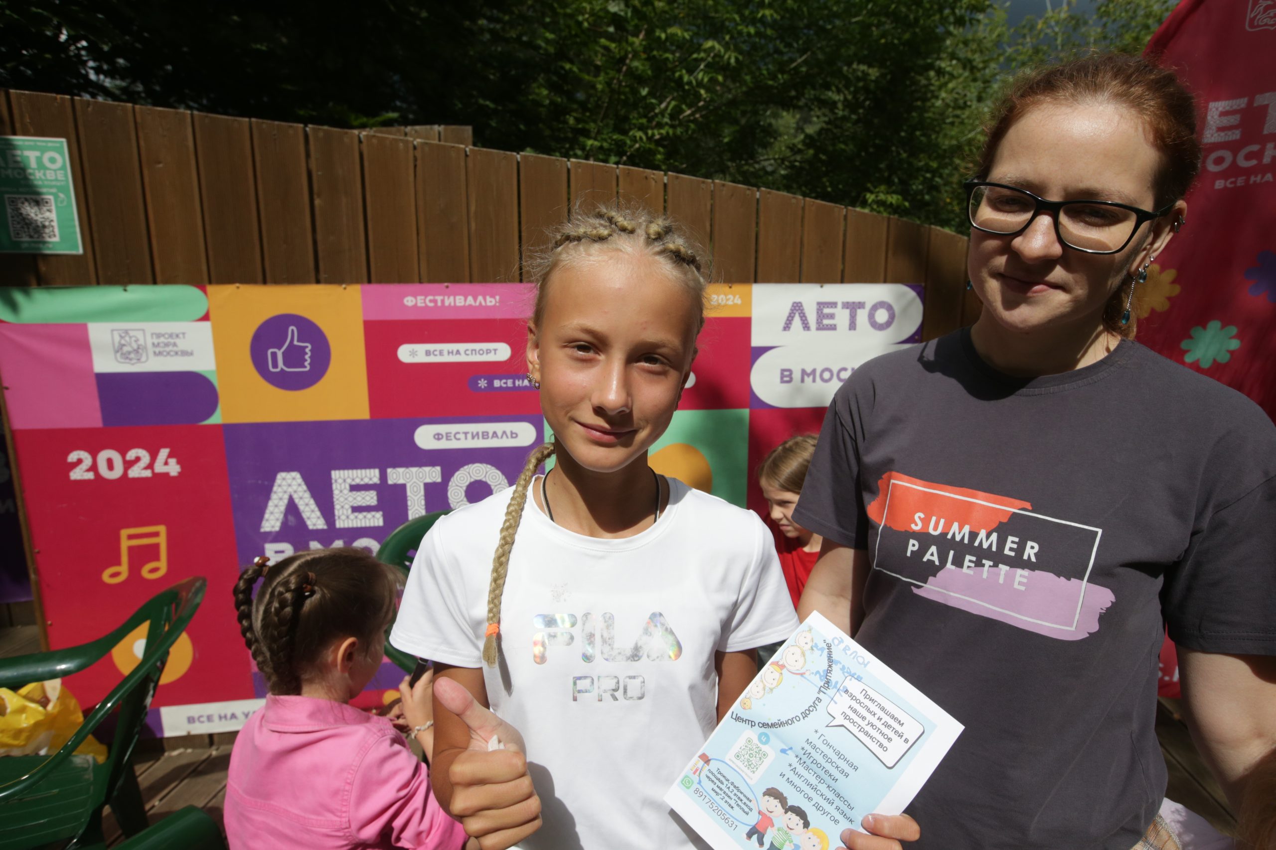 После свистка тренера матч был остановлен для перерыва. Команды разбрелись в противоположные части площадки, чтобы обсудить стратегию. Тем временем на художественном мастер-классе «Летние кисти» участники создавали яркие пейзажи с помощью гуаши и акварели, а также раскрашивали любимых персонажей из мультфильмов. Завершив работу, художники демонстрировали свои картины новым знакомым и аккуратно складывали их, чтобы взять с собой домой и показать родителям.
