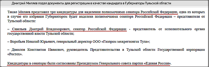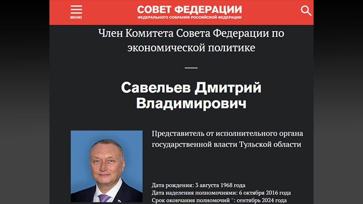 С тех пор Дмитрий Савельев - в политике. Он ещё трижды становился депутатом парламента, но уже от Тульской области (в IV созыве от блока "Родина", в V и VI созывах - по спискам партии "Единая Россия"). В 2016-м избранный губернатор Тульской области Алексей Дюмин (с 29 мая с.г. - секретарь Госсовета) делегировал его в Совет Федерации от исполнительного органа власти Тульского региона, в 2021-м Савельев повторно был наделён полномочиями сенатора. И к слову, нынешний врио главы Тульской области Дмитрий Миляев включил его в список своих кандидатур в Совфед в случае избрания губернатором на сентябрьских выборах.