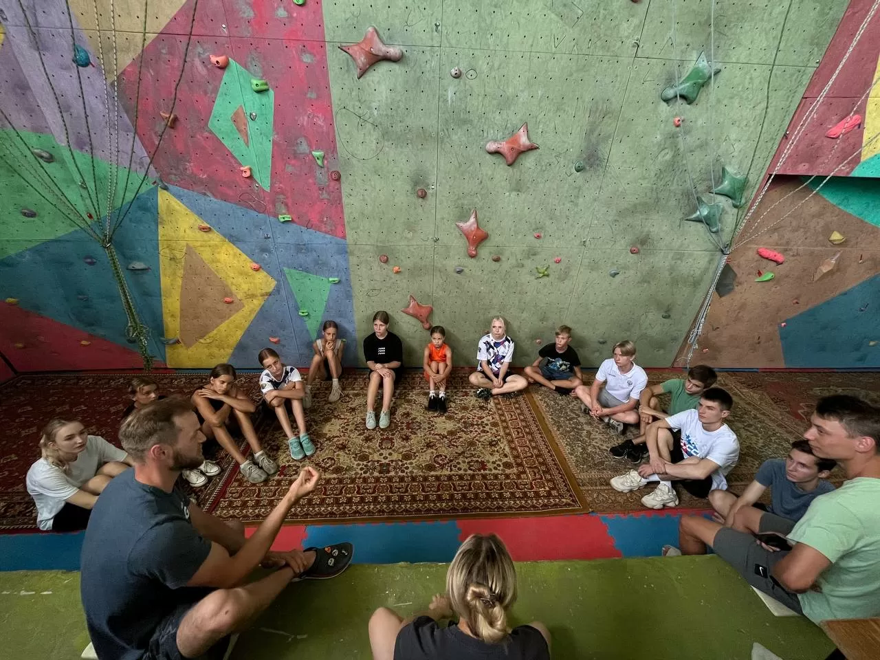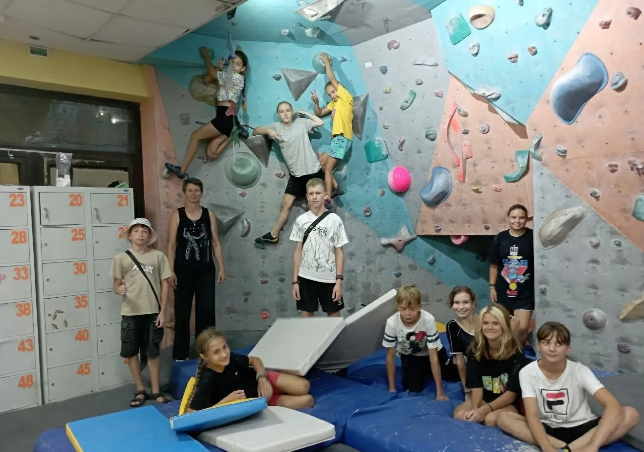 Еще одну остановку сделали в Мариуполе. Здесь работает частный скалодром, включающий в себя крытый боулдер-зал и уличные стенды для лазания на трудность и лазания на скорость. Здесь с удовольствием тренируются местные ребята.
