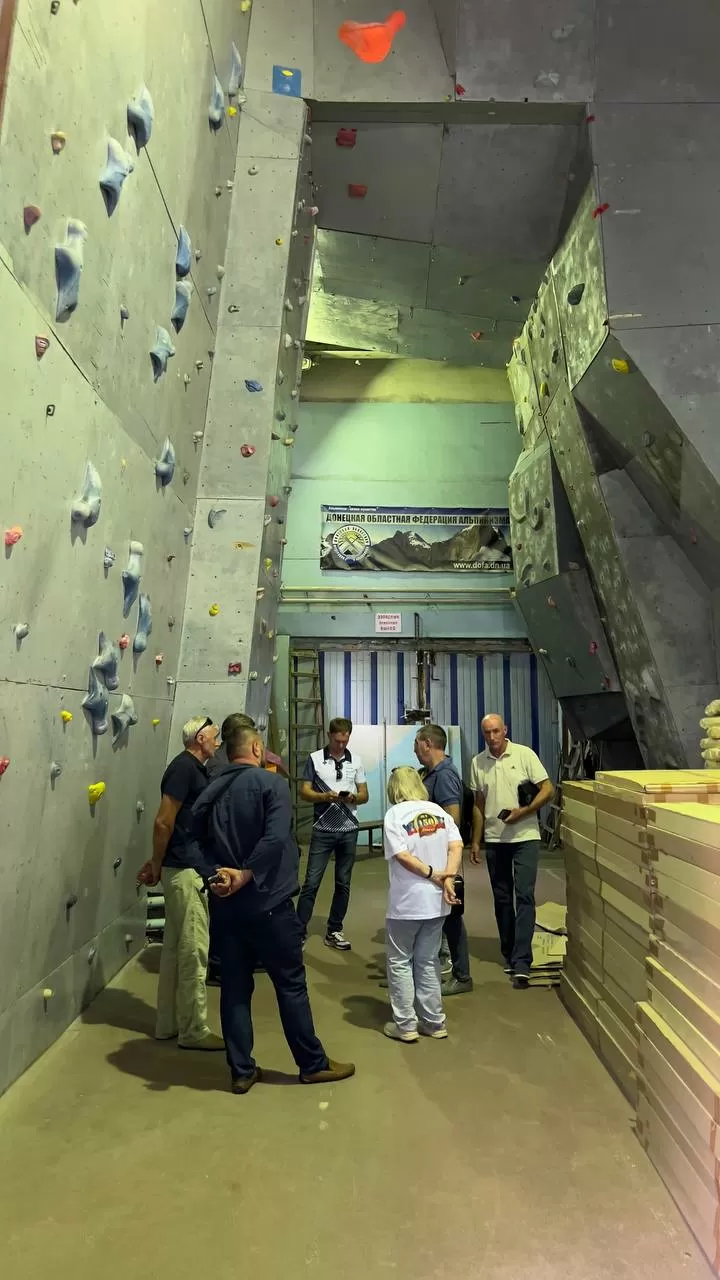 В Донецке представители ФСР посетили здание легкоатлетического манежа, где установлен скалодром. Этот объект последние годы находится в аварийном состоянии. В результате обстрелов он неоднократно подвергался разрушениям. Для посещения он закрыт. Других площадок для тренировок в столице Республики нет.