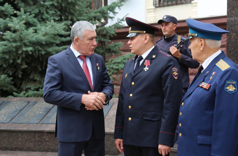 После завершения церемония вручения орденов, собравшиеся возложили цветы к Мемориалу памяти сотрудников органов внутренних дел, погибших в годы Великой Отечественной войны и мирное время.