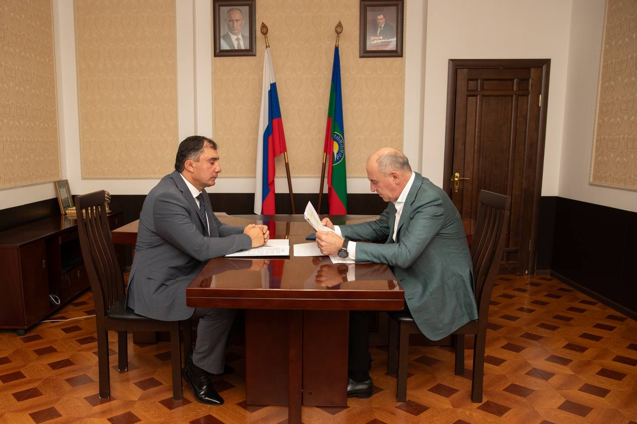 Глава КЧР Рашид Темрезов провел двустороннюю встречу с главой администрации Карачаевского района Спартаком Кущетеровым