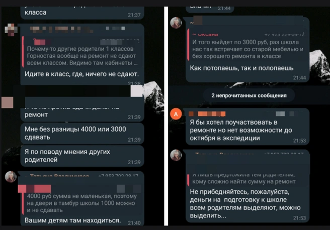 При этом истории с поборами могут закончиться и печально. Глава Совета матерей Новосибирской области Наталья Боголюбова рассказала, что несколько лет назад к ним обратилась мама, которую начали терроризировать после ее жалобы директору. Женщина якобы пошла в администрацию школы после сообщений в чате о поборах. В итоге мама младшеклассника решила перевести ребенка в другую школу из-за напряженных отношений с родителями и учителями.