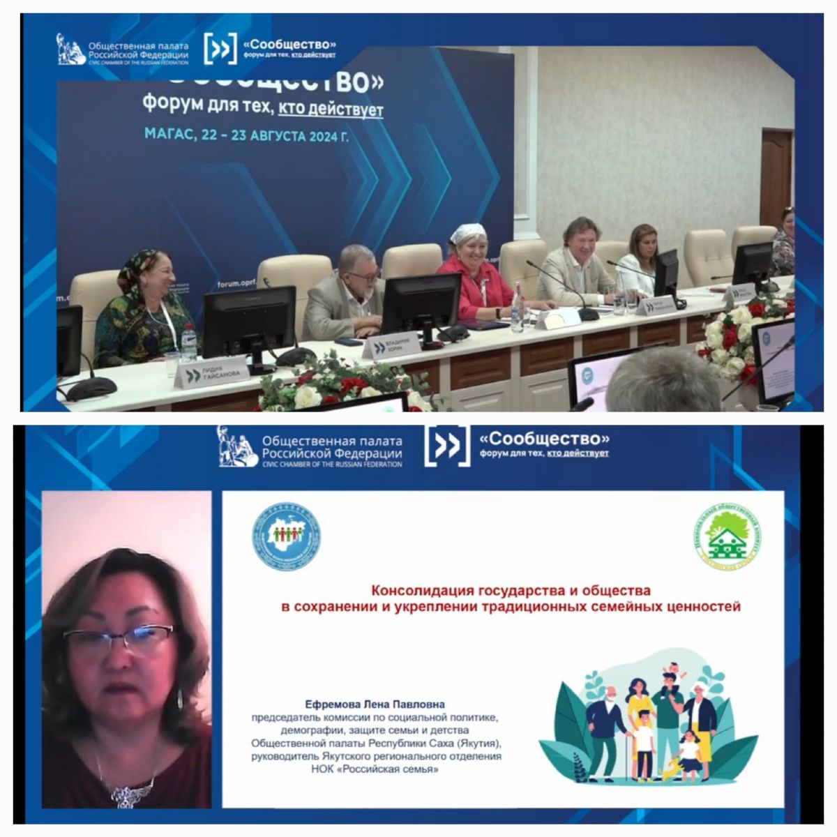Лена Ефремова, председатель комиссии ОП РС(Я) по социальной политике, демографии, защите семьи и детства, приняла участие в тематическом треке «Традиции поколений и укрепление семейных ценностей", которое состоялось на площадке регионального этапа форума "Сообщество". В этот раз местом проведения "Сообщества" стал город Магас (Республика Ингушетия).