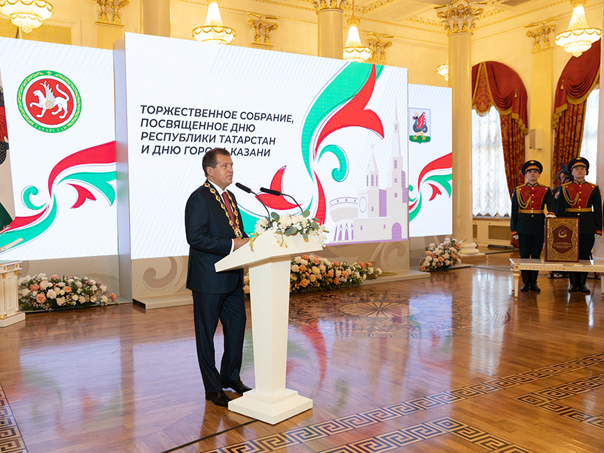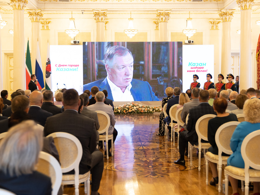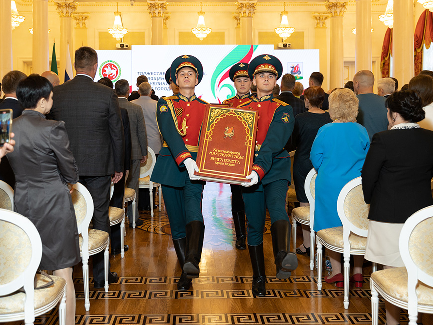 Традиционно празднование Дня города и республики началось с чествования отличившихся жителей в Казанской Ратуше. Мэр столицы Татарстана Ильсур Метшин вручил республиканские и городские награды людям, внесшим вклад в развитие и процветание Казани. Особыми гостями церемонии стали участники специальной военной операции и члены их семей, которых отметили за труд и доблесть на благо столицы Татарстана, а также за большой вклад в воспитание детей и заслуги в укреплении института семьи.