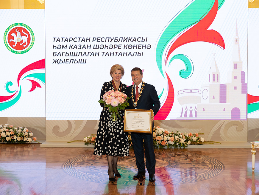 В Книгу почета Казани внесли председателя совета директоров ПАО «Ак Барс» Банк, генерального директора АО «Связьинвестнефтехим» Валерия Сорокина и первого заместителя директора – главного градостроителя Института развития столицы РТ Татьяну Прокофьеву.