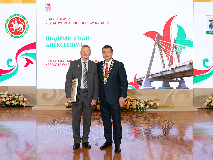 Замначальника отдела социальных проектов управления социальной политики исполкома Казани Вера Гаршина, водитель трамвая Трамвайного депо им.Героя Советского Союза И.К.Кабушкина МУП «Метроэлектротранс» Фидания Заббарова, мастер АО «Казметрострой» Иван Шадрин и директор филиала Российской телевизионной и радиовещательной сети «Радиотелевизионный передающий центр РТ» Владимир Якимов поощрены знаками отличия «За безупречную службу Казани».