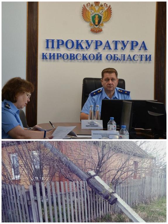 Поводом к проведению проверочных мероприятий послужилопоручение прокурора Кировской области Андрея Оборока по итогам состоявшегося личного приема местных жителей, обратившихся с просьбой о принятии мер прокурорского реагирования.В своей жалобе жительница пгт Ленинское сообщила о повреждении придомового имущества (забора) который был поврежден в результате накренения опоры линий воздушных электропередач.