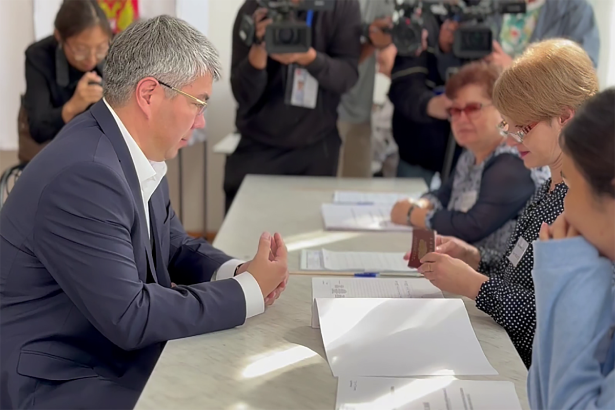 Секретарь реготделения «Единой России», глава Тувы Владислав Ховалыг проголосовал на избирательном участке №29 в Кызыле.