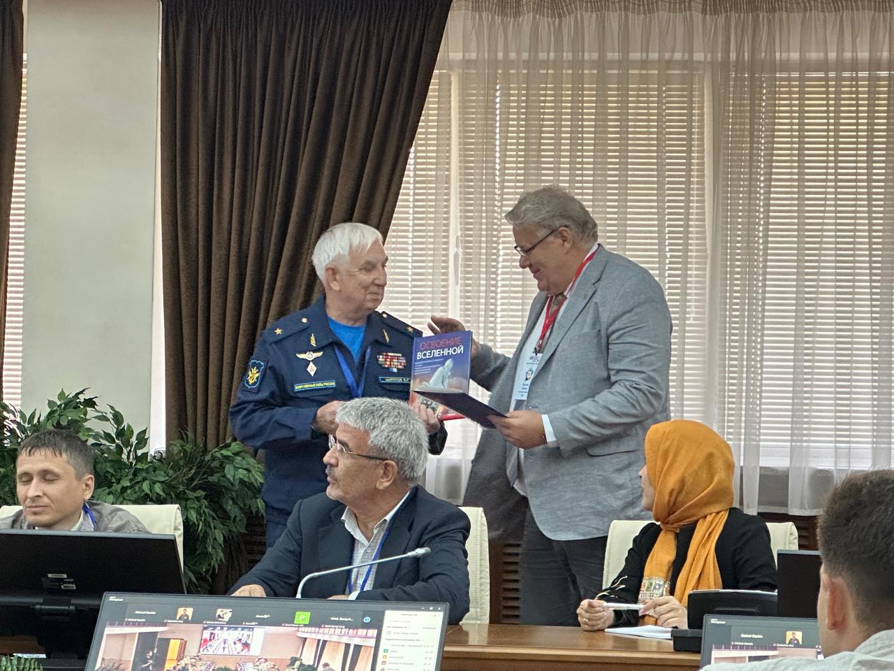 Ветеран космических войск, генерал-майор Владислав Шарипов зачитал приветствие советского и российского летчика-космонавта, героя Советского Союза и Героя Российского Федерации Сергея Крикалева в адрес участников конференции, после чего передал в дар Музею Астрономической обсерватории им. В.П. Энгельгардта книгу «Освоение Вселенной».