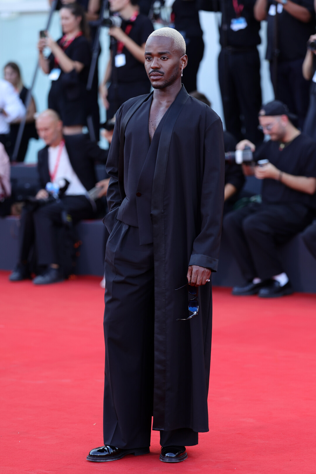 Жюри 81-ом Венецианском кинофестивале (и нашего личного фэшн-чарта) возглавилаИзабель Юппер, появившаяся на церемонии открытия в алом платье из кутюрной коллекции Balenciaga (с Демной Гвасалией актрису давно связывает дружба, а с 2024 года — еще и амбассадорство). На другого дизайнера Демну Юппер променяла только раз — на премьере фильма «Квир» Луки Гуаданьино появилась в сверкающем макси Armani Privé в тандеме с беретом из той же ткани. Кстати, Джорджо Армани собрал в Венеции, пожалуй, самый внушительный пул подопечных. Загибаем пальцы: Кейт Бланшетт выбрала для церемонии открытия металлизированное платье со строчками кристаллов, а для показа сериала «Все совпадения случайны» — черный комбинезон с жемчужными нитями на спине; звезда сериала «Половое воспитание» Шути Гатва появился в total-black-тройке из объемных брюк, асимметричного жилета и кимоно; а известная по сериалу «Ривердэйл» актриса Камила Мендес надела на красную дорожку фисташковое платье с драпировками и кружевом.