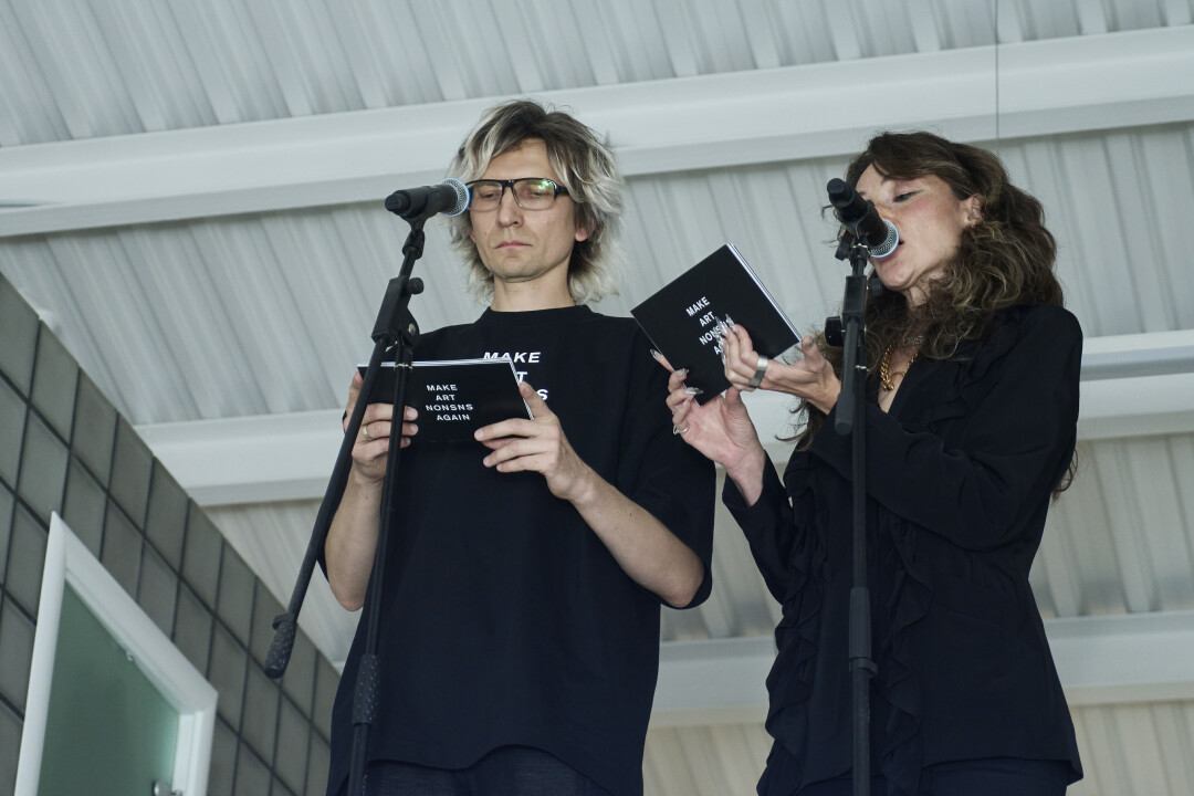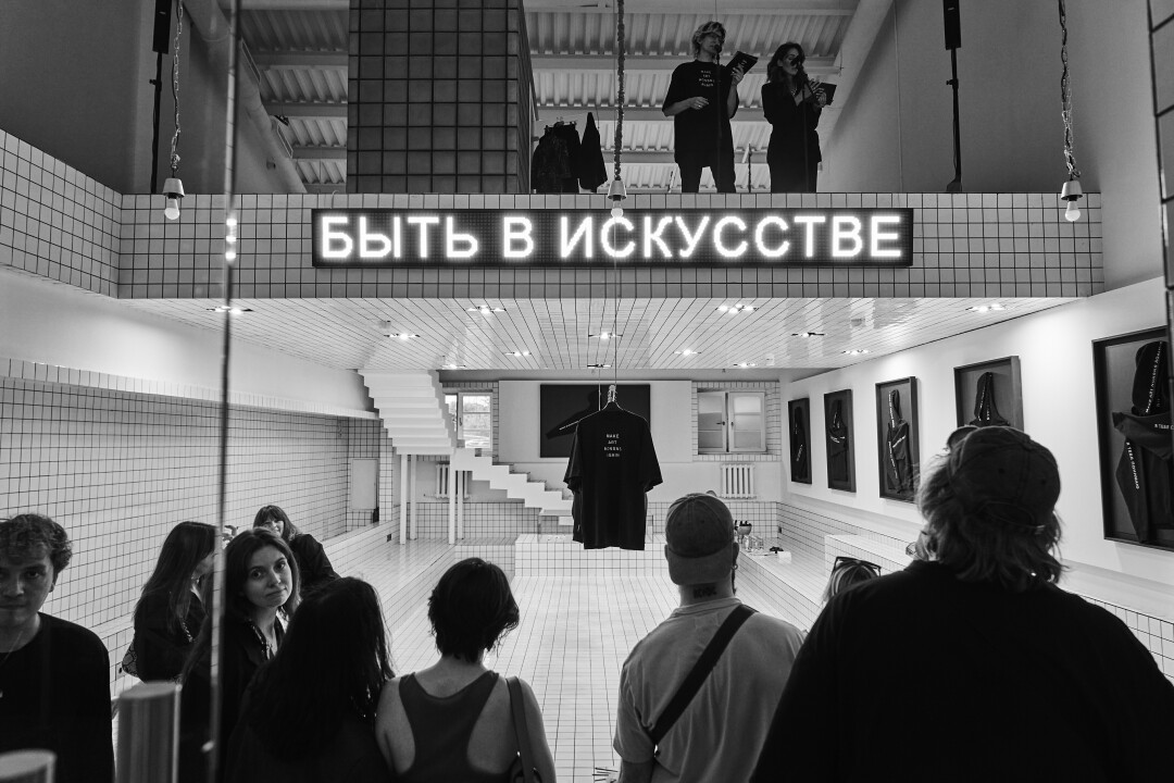 Художники, дизайнеры, кураторы, галеристы, архитекторы и «НН.Собака.ru», само собой, встретились в Центре современного искусства «Винзавод» 10 сентября на официальном открытии филиала FUTURO в столице. Авторы первой выставки —Мария Челоянц и Гоша Голицын. Участники гибридной самоорганизации NONSNS представили уникальный проект «Быть в искусстве». Рекламные инструменты в декларации творческого замысла, игра с историей места, носки как самостоятельное художественное произведение — разгадываем ребусы арт-дуэта вместе.
