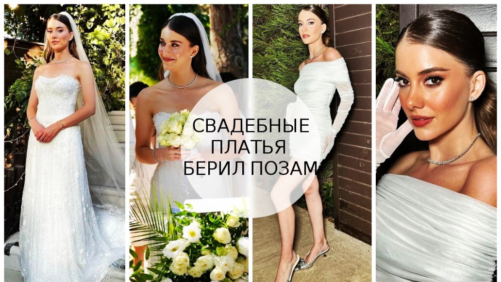 На многочисленных снимках, выложенных в Сети, видно, что 28-летняя Берил Позам предпочла длинное и простое свадебное платье без бретелек с кружевными элементами. Наряд был разработан Banu Güven Studio. Затем, на after party, состоявшейся после свадьбы, Берил Позам надела белое мини-платье с перчатками от бренда Leam Almes и сочетала его с серебряными туфлями от Miu Miu.